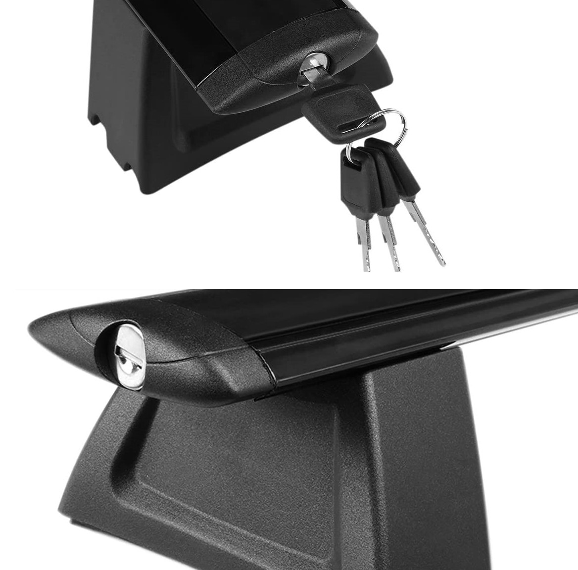 - Menos ruido y bloqueable: la forma aerodinámica hace que sea eficaz para minimizar el ruido del viento. Y el sistema de bloqueo con llaves mantiene la barra segura y evita el robo.