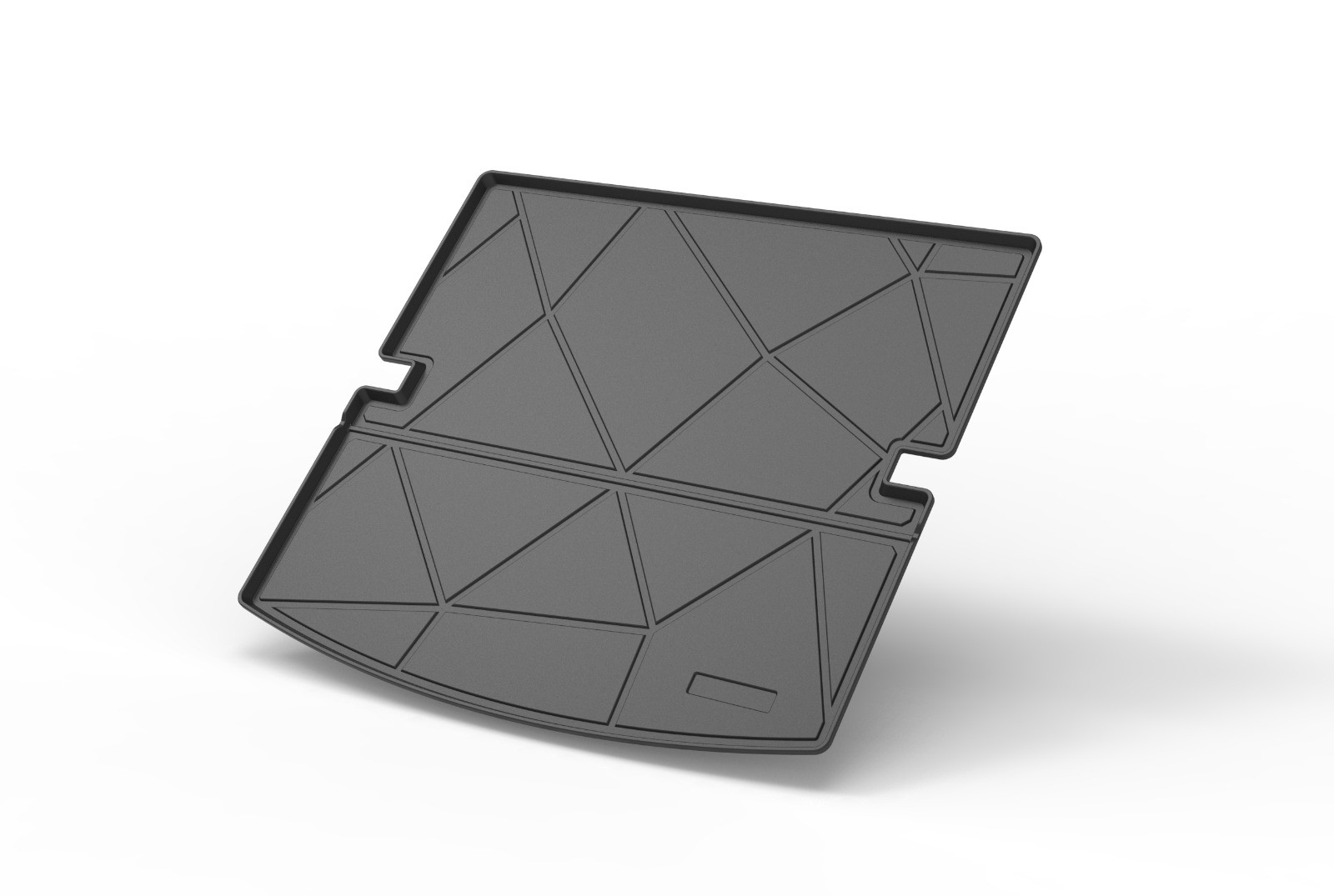 - Tiene la forma exacta del maletero por lo que se ajusta firmemente sin dejar espacio. (Los dos huecos laterales son para que pueda pasar el cinturón de seguridad trasero). Asimismo, posee bordes reforzados y elevados, que mantienen el interior del maletero limpio evitando que este se ensucie ante derrame de líquidos u otros.